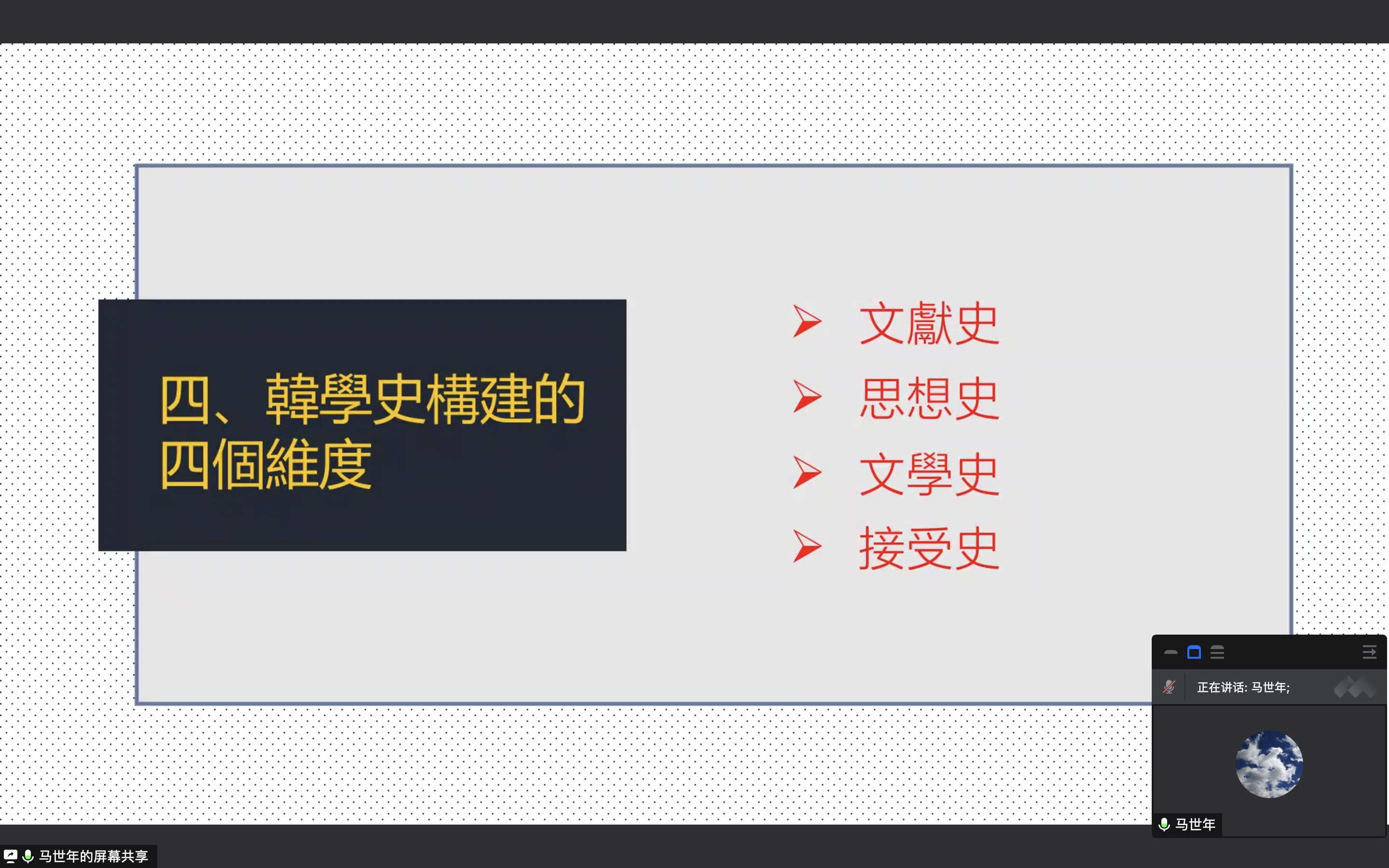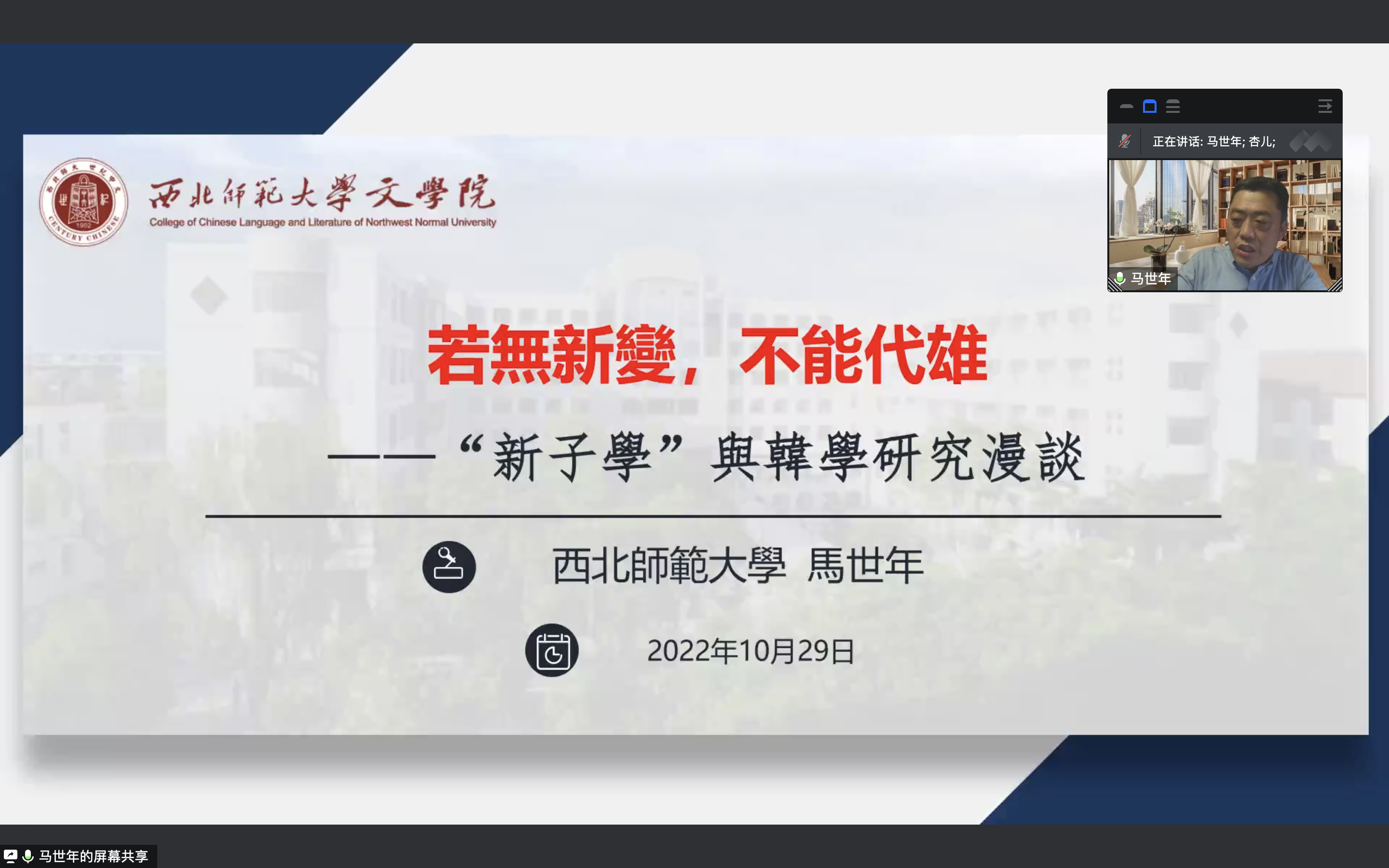 在腾讯会议平台成功举办了题为“若无新变,不能代雄——新子学与韩学研究刍论”的学术讲座。讲座特邀西北师范大学电子游戏