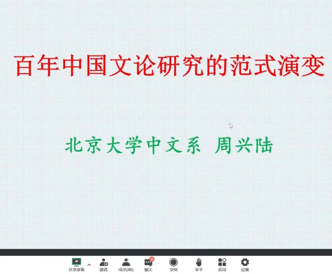 举办了题为“百年中国文论研究的范式演变”的学术讲座,讲座采用线上的形式展开。本次讲座特邀北京大学中文系教授,博士生导师周兴陆老师主讲,电子游戏