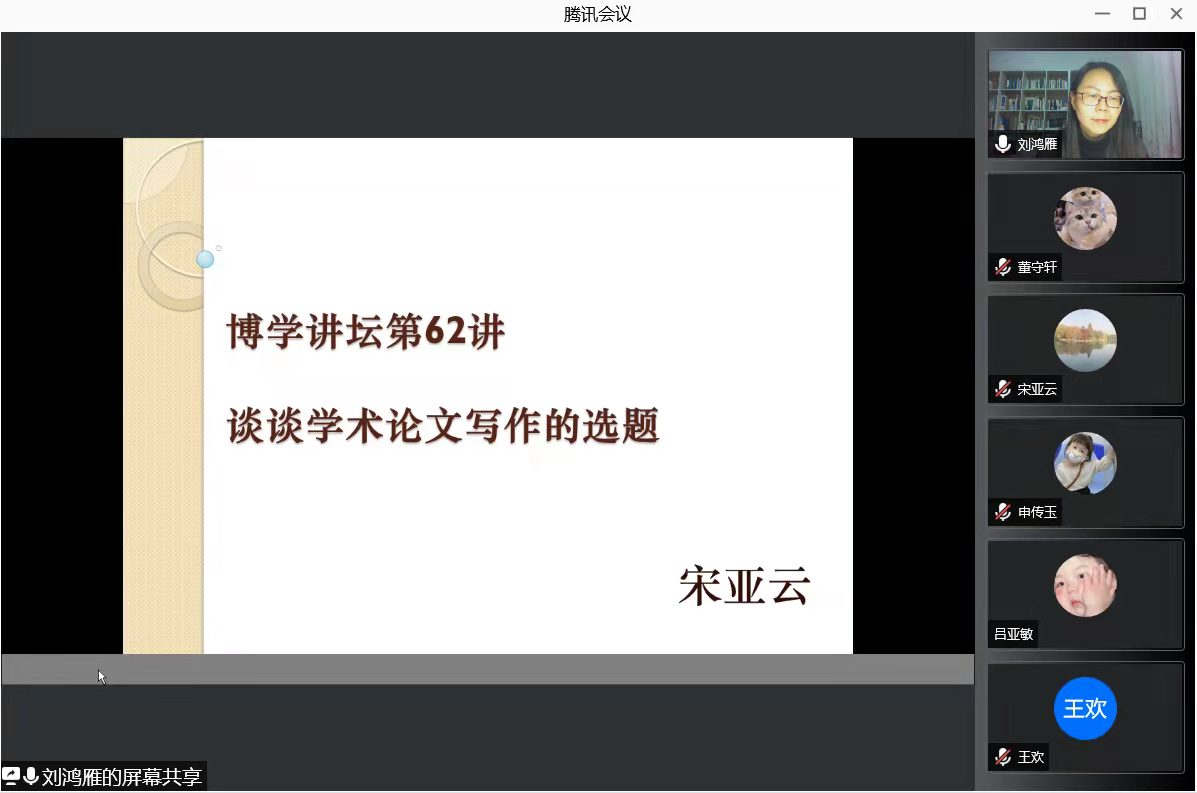 副院长刘鸿雁主持,汉语言文字学专业全体研究生及学院部分教师参加了本次线上讲座。