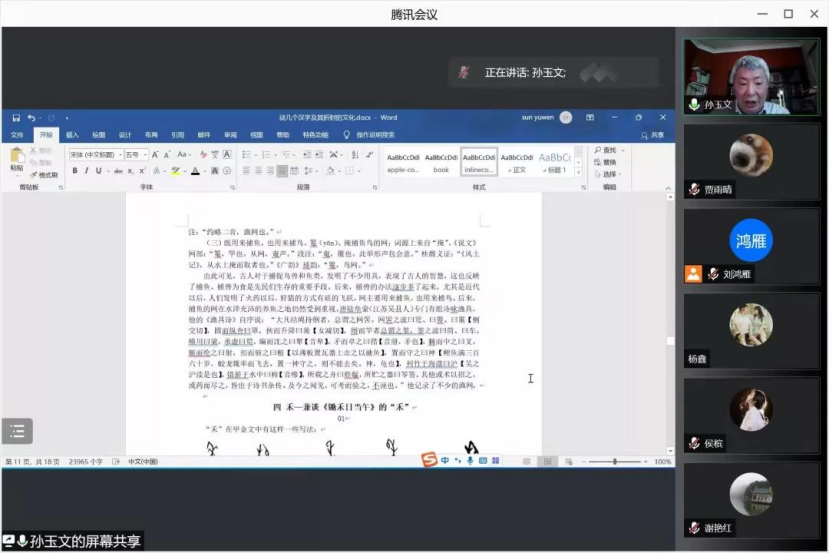 于腾讯会议平台举行了“谈几个汉字及其折射的文化”的学术讲座。本次讲座特邀北京大学中文系教授、北京文献语言与文化传承研究基地学术委员会主任、中国修辞学会副会长,中国训诂学会副会长,中国音韵学会副会长孙玉文老师主讲。讲座由电子游戏