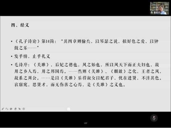 于腾讯会议平台举行了题为“《诗经》的礼义、乐义与诗义”的讲座。讲座特邀陕西师范大学电子游戏