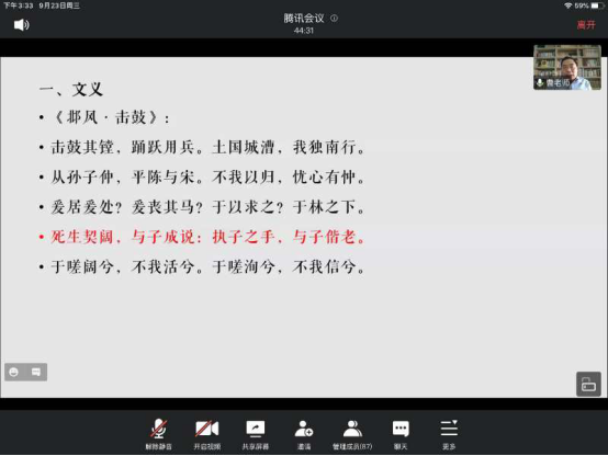 讲座结束后,曹胜高教授还与聆听本次线上讲座的同学进行了深入的问答互动。通过曹教授对史学材料的旁征博引,使得同学们对《诗经》的研读有了更为深入的学习和理解。