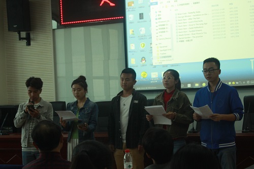 最后,学院中文系副主任杨晓宇老师作了总结发言。他说,两位嘉宾真诚耐心、风趣幽默、精湛高超的专业指导让大家深入理解了朗读、朗诵艺术,从理论和实践两方面切实提升了同学们的朗读、朗诵水平,对于学生们备战即将到来的朗诵比赛非常有益,也在一定程度上弥补了中文系缺少朗读、朗诵指导类课程的不足。最后,他对两位嘉宾的光临指导,以及对杨瑞菊同学的组织和主持,表达了真诚的感谢。