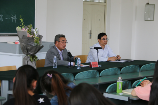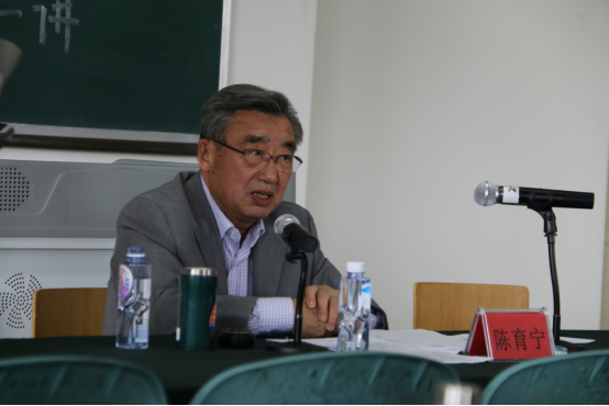 院长胡玉冰教授主持了讲演,并向陈育宁教授献花。党委书记鲁晋、副院长刘鸿雁、杨浣及部分研究生、本科生聆听了首场讲座。