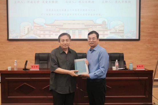 主题讲座开始前先进行了赠书仪式。胡玉冰院长向关爱和教授赠送《朔方文库》部分作品,对关爱和教授多年来给予电子游戏