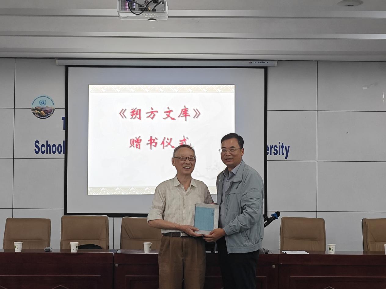主题讲座开始前先进行了赠书仪式。胡玉冰院长向鲁国尧先生赠送《朔方文库》部分作品,对鲁国尧先生的到来表示热烈欢迎和感谢。