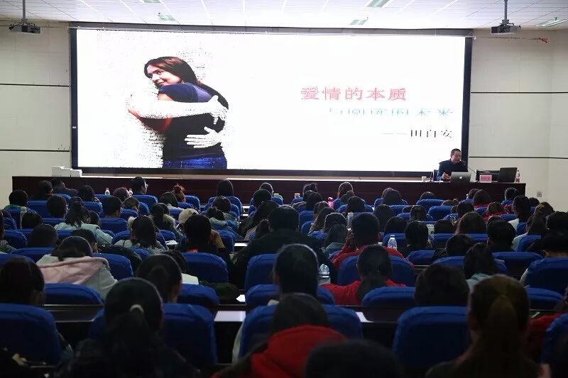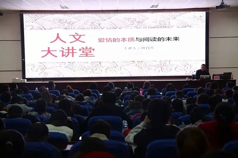 讲座中,田自安老师通过援引济慈的名言、叶芝的爱情故事来阐释爱情与阅读的关系,并结合自身的经历,与人文学子分享了自己关于爱情与阅读的心得体会。之后田自安老师从宗教哲学、生物和化学、经济与社会这几个视角分析了爱情,为同学们解读了爱情的生理原理与自然规律,对大家形成正确的爱情观提供了指导与帮助。结合自己的理解,田自安老师提出了几点关于爱情独到的见解:开始去爱、准备受伤、看淡爱情、调适爱情,关注心理健康。通过他声情并茂的解说,大家对爱情有了更深层次的领悟。提问互动环节,同学们和田自安老师展开了亲密的讨论与交流,现场气氛轻松活跃,大家畅所欲言,交谈甚欢。讲座最后以马小军精确而简短的点评,以及对田自安老师衷心的感谢,圆满的落下了帷幕。