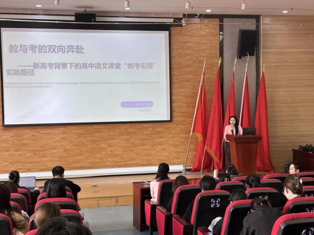 讲座尾声,教研室王静老师对胡月老师的精彩讲座表示感谢,王老师提出未来的语文教师既要成为考点的解读者,更要成为素养的培育者,在把握教育规律的基础上,探索教考融合的创新路径,实现知识传授与价值引领的双重使命。