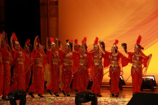 青年学子对祖国深深的赞美和祝福,汉服社与形象礼仪社的节目以绚丽的舞台造型展现了中华民族博大精深的民族和文化内涵,现代舞《美人计》《music》《律动青春》展示了一群90后大学生的朝气蓬勃和无限靓丽,小品《世纪之歌》通过时代的变迁勾勒出一幅改革开放以来国家和民族巨大变化下的普通老百姓的幸福生活。华丽的服装、动情的音乐、迷人的微笑、璀璨的灯光,整个晚会精彩纷呈,欢声笑语此起彼伏。