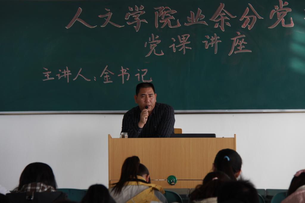 党总支书记高石钢作题为《端正入党动机,严格按照党员标准要求自己,以实际行动争取早日入党》报告。他从入党积极分子如何端正入党动机、严格按照党员标准要求自己和自觉接受党组织培养等三个方面讲述了入党前需要解决的几个理论问题。高书记鼓励在座的入党积极分子主动向党组织靠拢,虚心接受党组织的培养教育,要树立正确的入党动机,以实际行动争取早日入党,争做服务社会,服务他人的楷模。