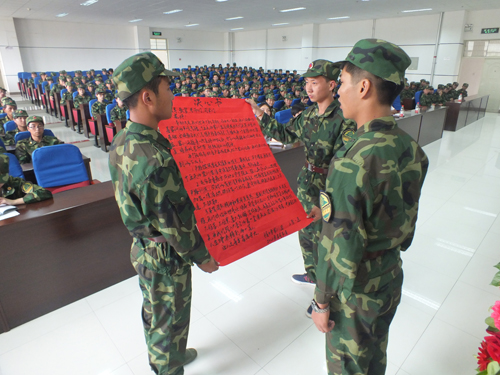 军事纪律管理办法和评奖评优办法》,要求学生对自己严于律己,遵守军训各项章程。2012级文秘班于经纬同学代表大一新生宣读《军训决心书》,慷慨陈辞激发了学生奋力拼搏的激情。随后,党总支副书记金玉河老师作了发言:他要求同学们必须正视军训的意义,做到严格服从指挥,积极遵守纪律,提高思想觉悟和军事素质水平,锻炼好身体。同时希望各班排长做好表率作用,认真对待军训。此外,金玉河老师还特别强调了军训期间的安全问题,要求大家秉持 “安全第一”的思想,把健康放在首位,对自己负责,并预祝此次军训能够取得圆满成功。最后,各位老师与2012级新生们共同观看了2011级军训宣传片,以此来鼓励新生再接再厉,更好的展示人文风采。