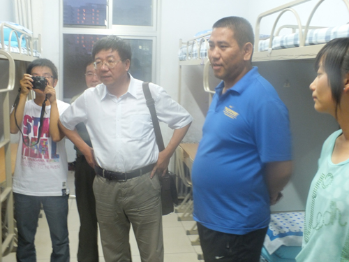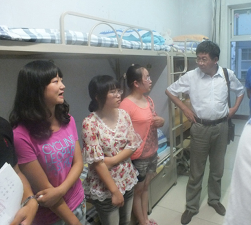 在慰问各新生的过程中,学院领导们与新生进行了亲切交谈:“你是哪里人?初来学校,住的还习惯吗?”、“有什么困难就来找老师,我们一定尽最大的努力为你们提供最好的学习、生活环境。”、“来到学校大家就是一家人,所以你们一定要相互关照。特别是本省的同学,要照顾好外省同学,友好相处。”……一句句温馨的话语,一声声亲切的问候,捂热了同学们的心,也让他们感受到家一般的温暖和父母亲一样的关怀,领导们幽默风趣的谈吐不时引起大家阵阵笑声,使得新生宿舍里洋溢着轻松愉快的氛围。学院领导们还察看了新生宿舍的设施条件,悉心嘱咐同学们要注意安全问题,如果有什么不便之处,即可找宿管部门立即解决。新生们纷纷表示:“感谢学院领导关心,我们一定珍惜在校的时光,团结一致,努力学习。”除了不断的嘘寒问暖、了解新同学的入学感受以外,学院领导们还鼓励大家要主动沟通,相互了解,及时调整好自身状态以适应大学生活,同时注意锻炼自己的独立生活能力,争取以饱满的精神状态投入到新的学习生活中来。