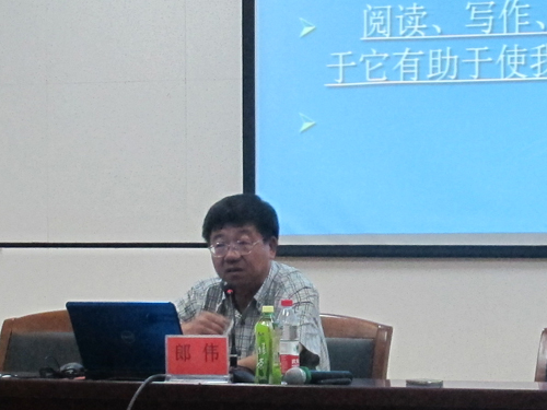 院长、硕士生导师郎伟教授在文科楼东侧报告厅为2012级全体新生做了题目为“谈谈高等教育中的人文精神培养和人格建设”的专题讲座,讲座由学院党总支副书记金玉河老师主持。
