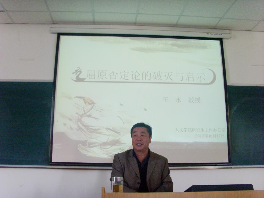 全体研究生做了题为《屈原否定论的破灭与启示》的学术报告。王永导师结合他自己的古代文学研究,详细阐述了二十世纪中国古代文学研究中“屈原否定论”从产生到破灭的全过程。尤其重点分析了诸多国内与日本学者反复兜售“屈原否定论”的学术原因与时代学术背景,并高度肯定了他的导师西北师范大学赵逵夫先生《屈原与他的时代》一书,在“破灭”“屈原否定论”上的突出贡献。