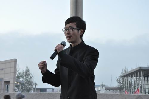 2011级旅游管理班杨栋同学进行了名为《一面国旗,一份责任,一个脊梁》的国旗下演讲。他的演讲号召大家坚定心中的信念,热爱祖国,做一个认真负责的青年人,挺起中国人的脊梁。让希望和憧憬展翅飞翔,让我们携起手来疾步向前,用智慧的汗水,去浇铸共和国明天的灿烂和辉煌。