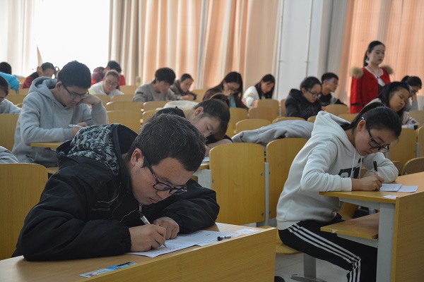 的四个专业,特别是外国语学院和物电学院的同学也主动要求参赛。比赛考场设在文荟楼203教室、205教室和309会议室,同学们或凝视思考,谋篇布局,或奋笔疾书,砌字成章。比赛从下午2时开始进行了两个小时,全部参赛同学提交了作品。