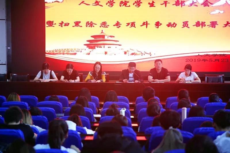 在贺兰山校区文荟楼东侧报告厅举行了学生干部大会暨扫黑除恶专项斗争动员部署大会。出席本次大会的有学院党委副书记马小军、研究生辅导员史春燕、本科生辅导员潘巍、研究生助管欧逸梅、郭家利、张倩。学院16、17、18级班委、宿舍长,团委、学生会、电子游戏全体成员参加。