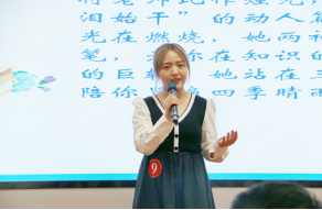 纳文婷以家庭三代人的初心使命,感悟师德风范。葛钰深入讲述了德入雨露润春泽,文含真情哺新苗的师德大爱。杨茜结合亲身经历,阐释了师者“青梅染雪迎初阳,兰心怀诚沃新花”的责任。王茹涵讲述了电子游戏