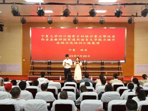 国家语言文字推广基地对口国家乡村振兴重点帮扶县西吉县教师国家通用语言文字能力提升培训,于2023年7月10日上午正式开班。