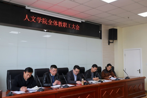 在贺兰山校区文荟楼309会议室召开全院教职工大会。会议由学院党委书记张培松主持,学院党委副书记、院长胡玉冰,党委副书记马小军,副院长丁峰山、杨晓宇和学院全体教职工参加了会议。