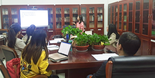中国古典文献学学位点2020至2021学年学术沙龙活动第1场(总第11场)在文荟楼七楼719室举行。本场沙龙活动由学位点负责人胡玉冰老师主持,2020级硕士研究生李正梅主讲,李宇晖、宣莉两名研究生就主讲内容进行点评,中国古典文献学2020级全体研究生参与讨论。