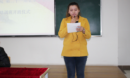 2013级文秘班桑迪同学开班仪式上代表全体学员发言,表示一定会利用这次宝贵的学习机会,认真学习党的理论知识和党史知识,提升自身的综合素质。