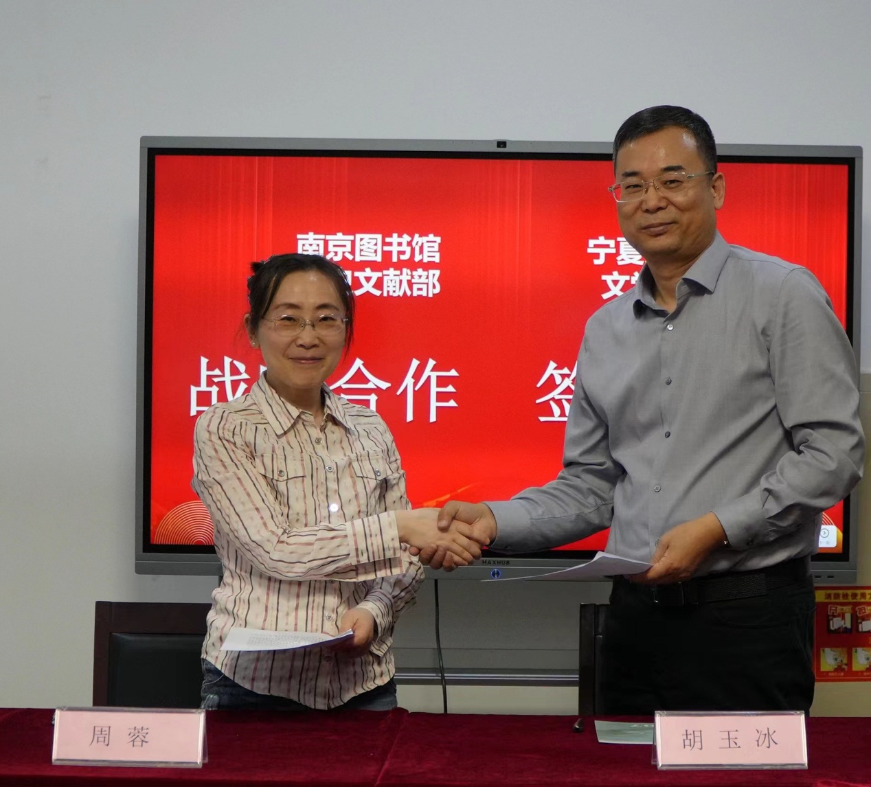 院长胡玉冰教授与南京图书馆历史文献部副主任周蓉分别代表甲方、乙方签字。
