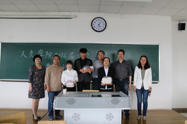 最后,答辩委员现场为获奖毕业生颁发奖品,并合影留念。